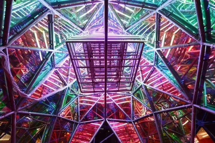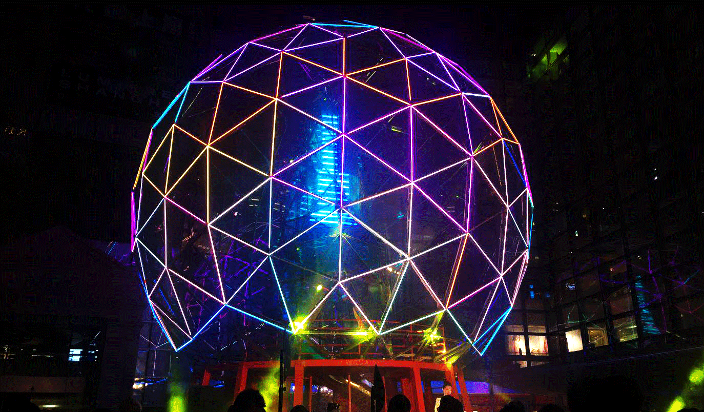The base of the installation was designed to serve a dual purpose: providing structural support for the weight of the ball-shaped framework while also functioning as an interactive playground. Visitors could enter this space and immerse themselves in a ball pit filled with white plastic balls, evoking a sense of playfulness and wonder. Access to the ball pit was facilitated by a slide, encouraging playful engagement from audiences of all ages. Additionally, the control room for the installation’s lighting system was discreetly housed within this level, enabling real-time adjustments to the dynamic LED light display.